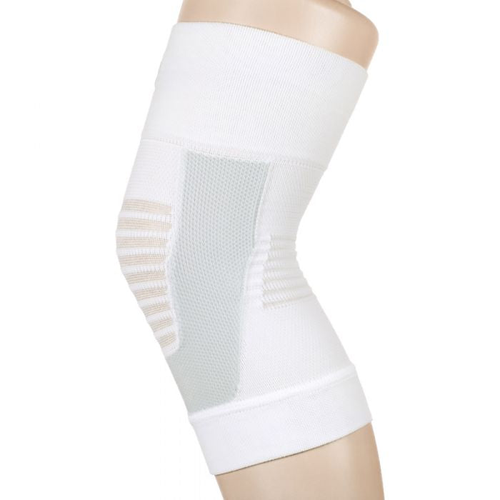 スリットニット構造がひざの曲げ伸ばしにスムーズに対応し、サポーターのズレを軽減します。